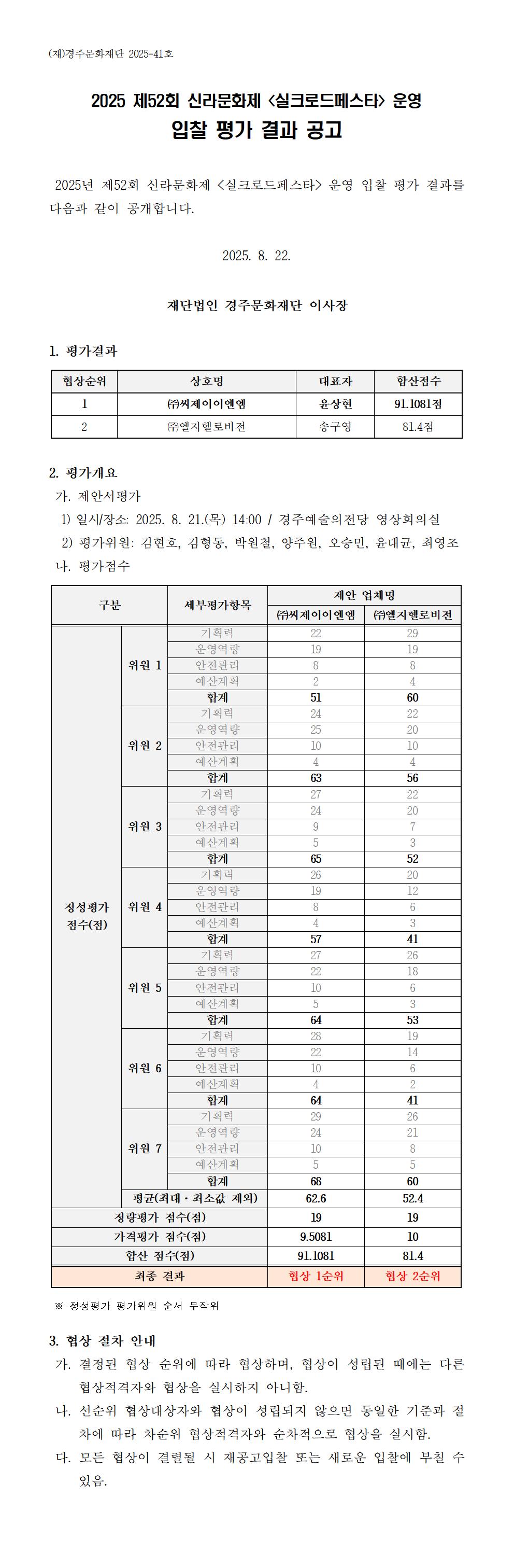 [입찰공고] 2025 제52회 신라문화제 <실크로드페스타> 운영 입찰 평가 결과 공고