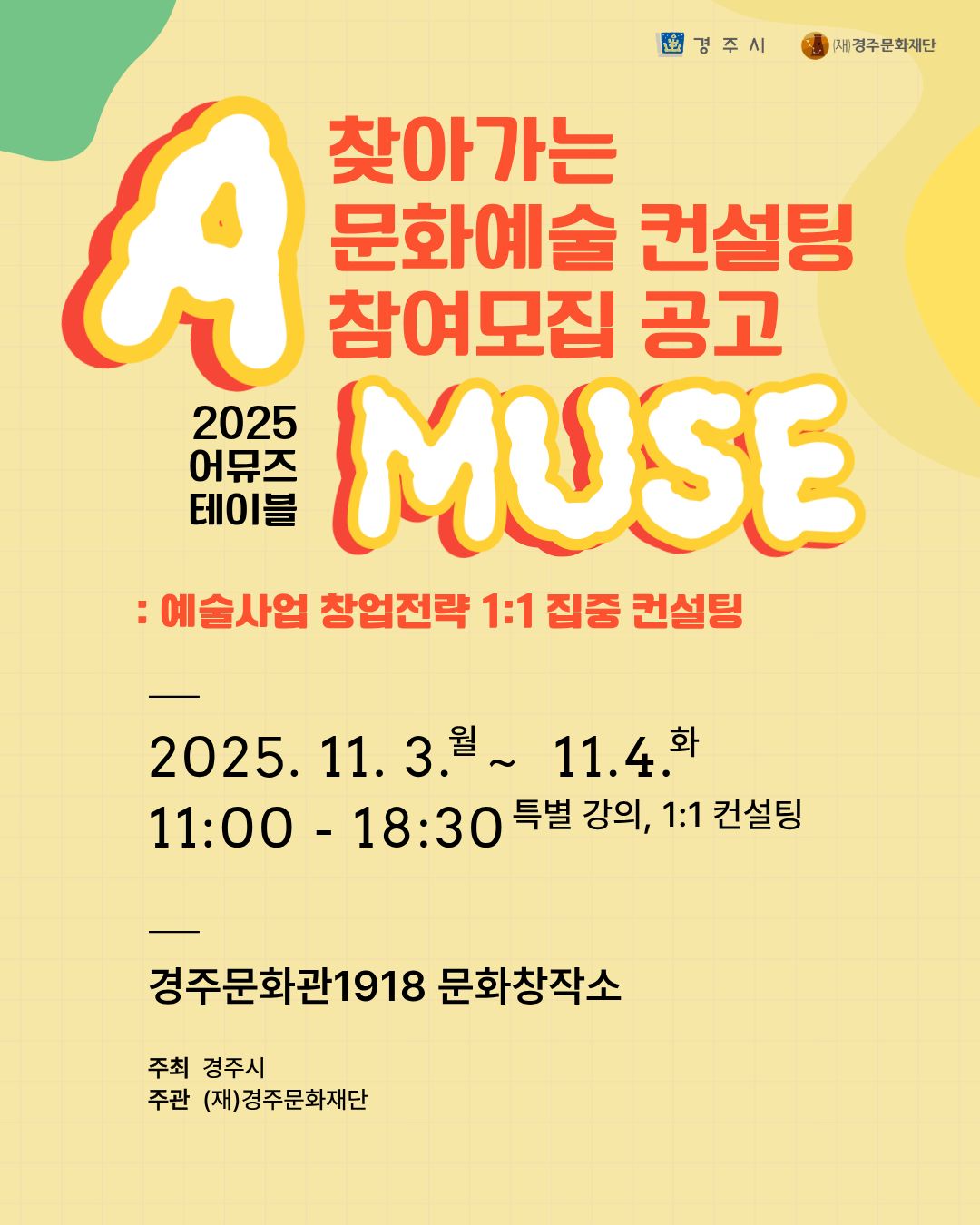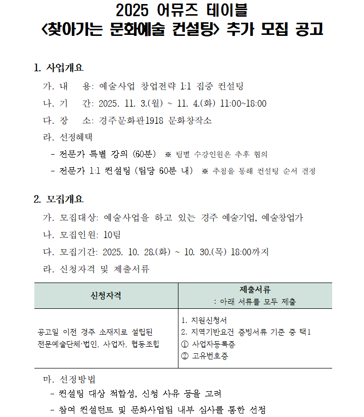 [공지사항] 2025 어뮤즈 테이블 '찾아가는 문화예술 컨설팅' 추가 모집 공고