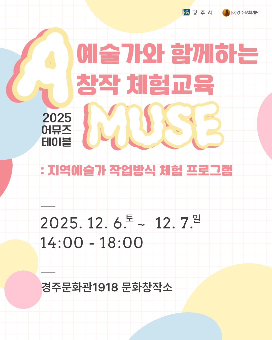 경주문화재단 2025 어뮤즈 테이블「예술가와 함께하는 창작 체험교육」 모집 공고